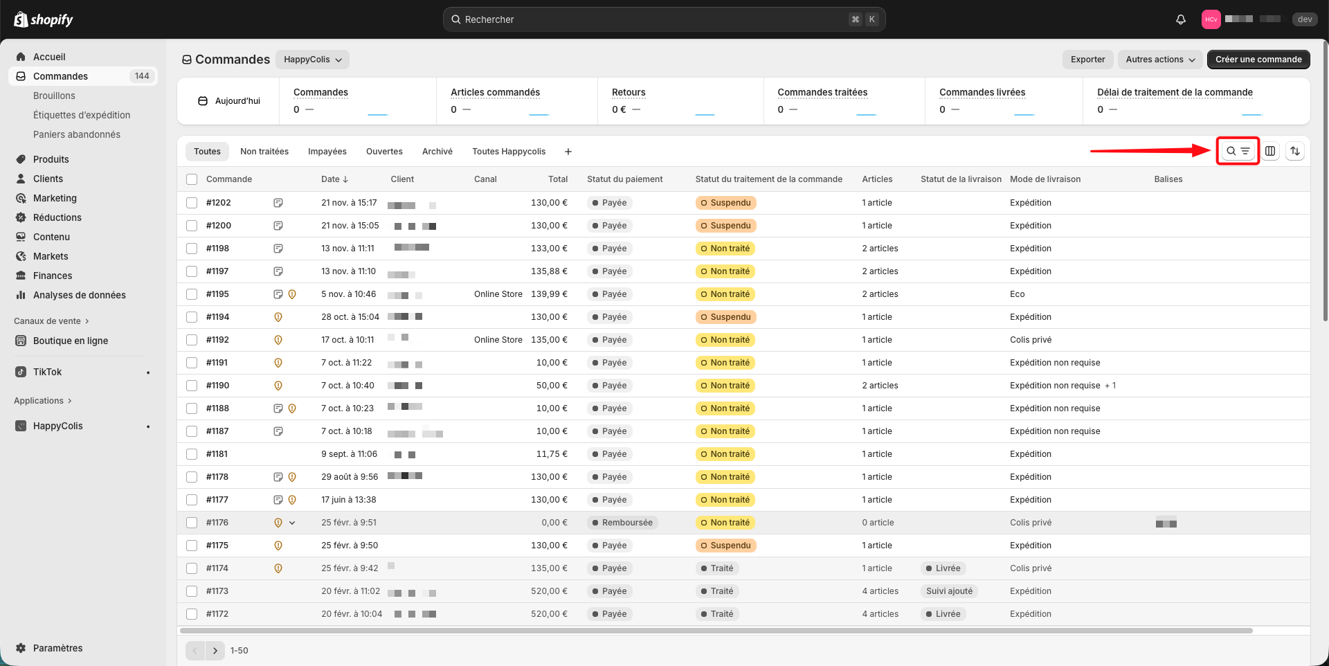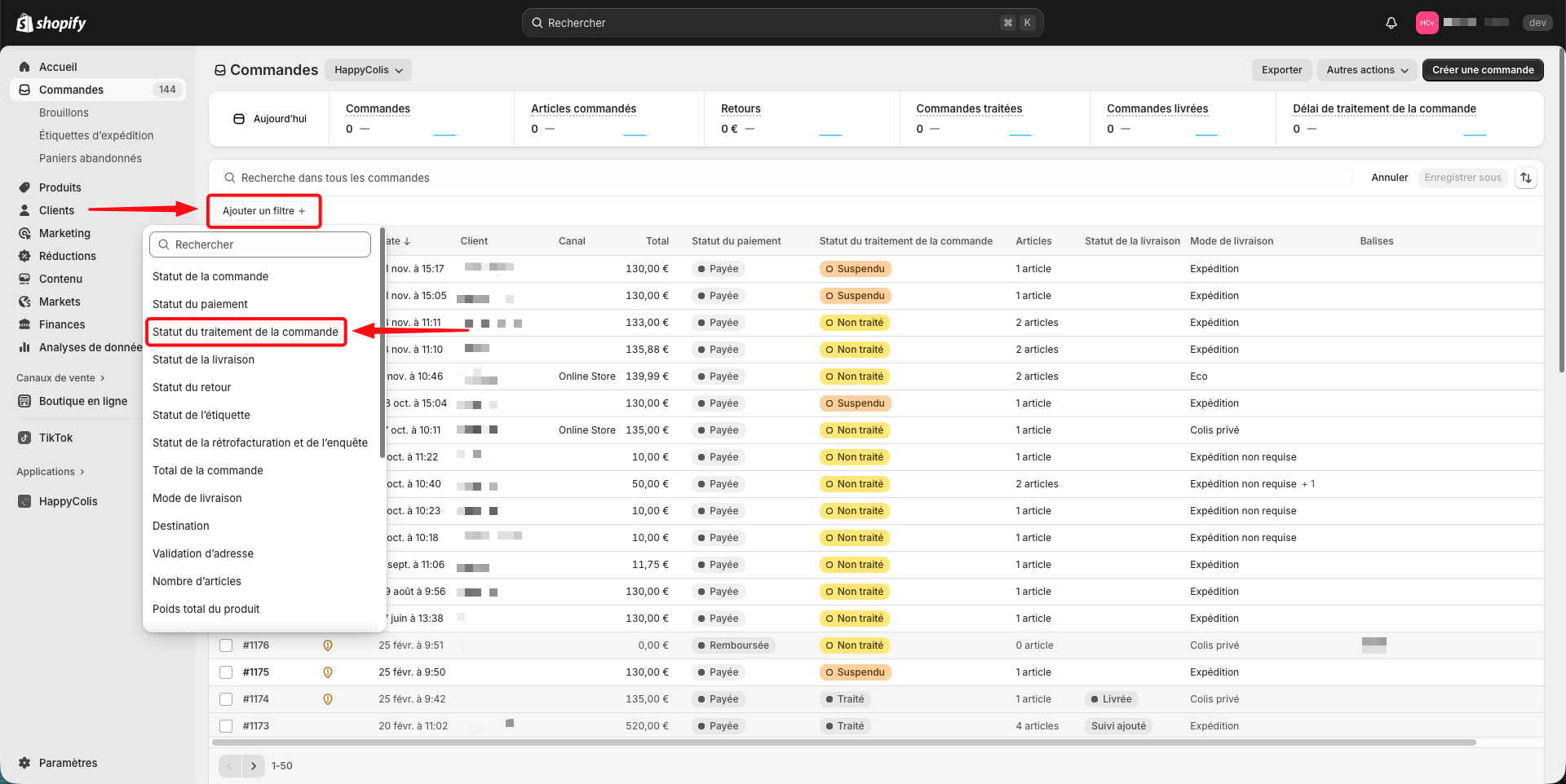 Filtrez vos commandes